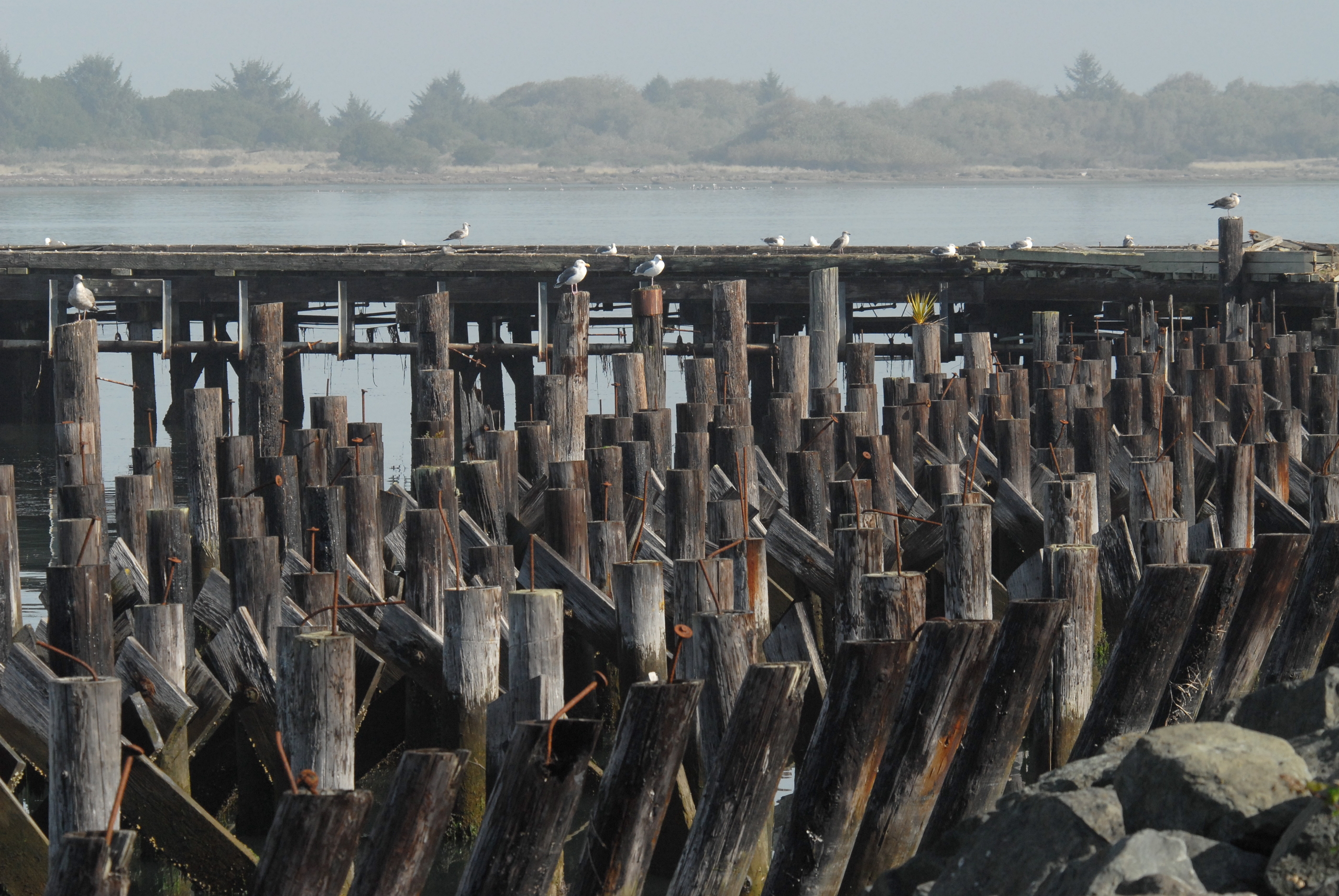 remains of an old dock in the bay